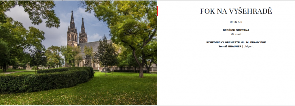 Vyšehrad je posvátné místo, kam se našinec vydává při slavnostních chvílích. Není tedy divu, že Smetana svůj geniální cyklus básní zahájil právě na zde. A není vhodnější čas pro to, aby poprvé ve svých dějinách FOK přeletěl na hudebních křídlech z Obecního domu do Vyšehradských sadů, než když Smetana slaví 200 let a Pražští symfonikové se blíží k 90. narozeninám. A přece se budou hudebníci při premiéře na staroslavné půdě cítit trochu jako doma. Pozornému divákovi určitě neunikne, že Smetanovu síň i vyšehradskou pláň zdobí socha Lumíra s harfou, neboť harfou vše začíná. Smetana by mohl vyprávět.